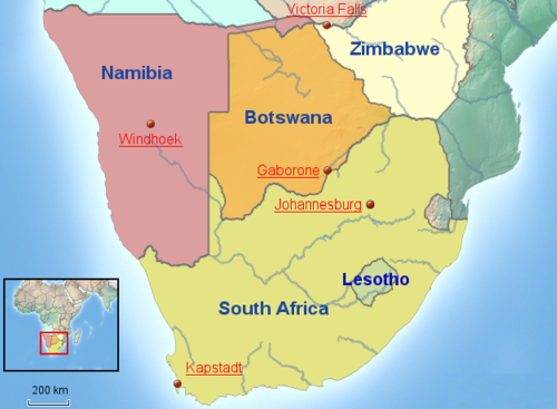Gerne stelle ich einen Vergleich des entsprechenden Reiselandes zu Deutschland her. Bekanntlich hat Deutschland eine Fläche von gerundet 357.000 km² und ist mit knapp 85 Mio. Einwohnern eines der am dichtesten besiedelten Länder Europas. Im südlichen Afrika werden wir vier Länder bereisen. Zusammen haben sie eine Fläche von über 3 Mio. km², sind damit etwa neun Mal so groß wie Deutschland, haben aber gemeinsam lediglich gut 80 Mio. Einwohner. Wir sind gespannt auf unendliche Weiten, lassen uns aber überraschen.