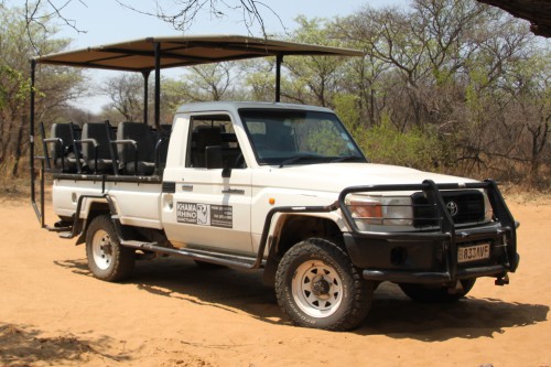 Unsere Tour führt uns Richtung Palapaye. Dort leben knapp 40.000 Menschen. Und morgen geht es weiter nach Orapa. Auf dem Weg dorthin machen wir in einer kleinen Gruppe einen Stopp im Khama Rhino Drive. Es ist ein Schutzgebiet und liegt in der östlichen Kalahari an der Straße zwischen Serowe und Orapa, etwa 25 km von Serowe entfernt. Dort buchen wir eine 4x4-Tour und hoffen auf das noch fehlende Tier in unserer Sammlung der „Big Five“ zu stoßen.