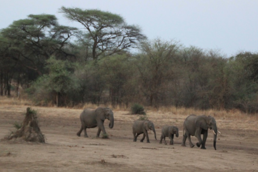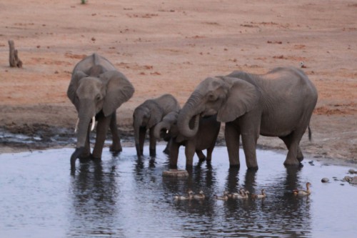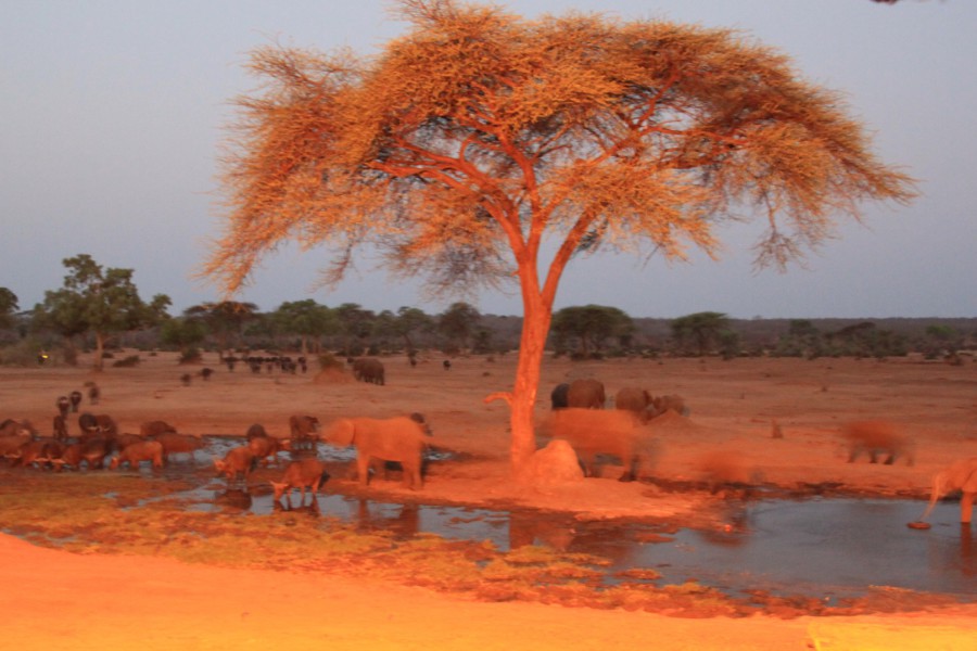 Wir haben Sicht auf Elefanten, Zebras, Büffel und Impalas.