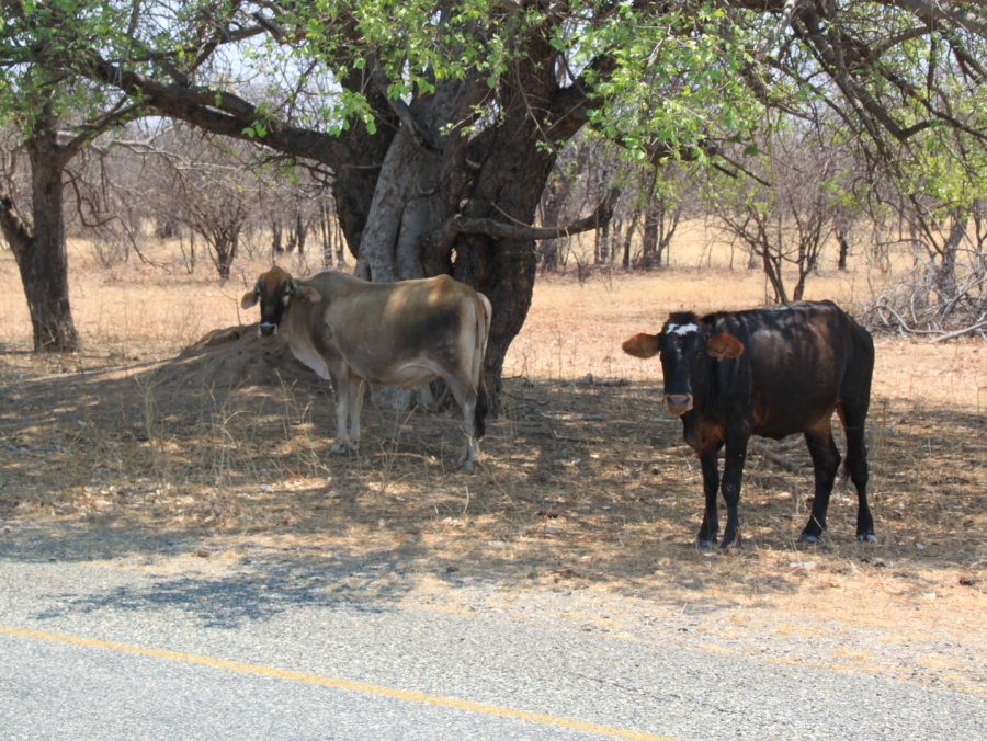 Achtung: Tiere am Straßenrand sind permanent zu sehen und dabei können sie unvermittelt die Straße queren.