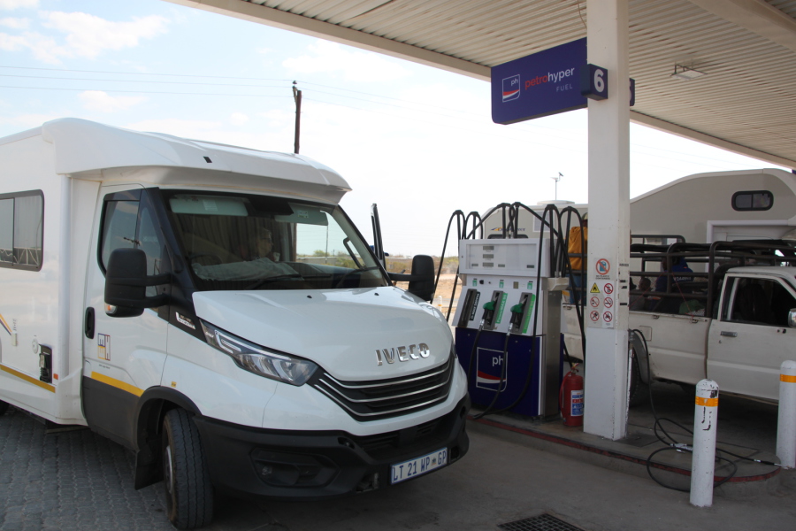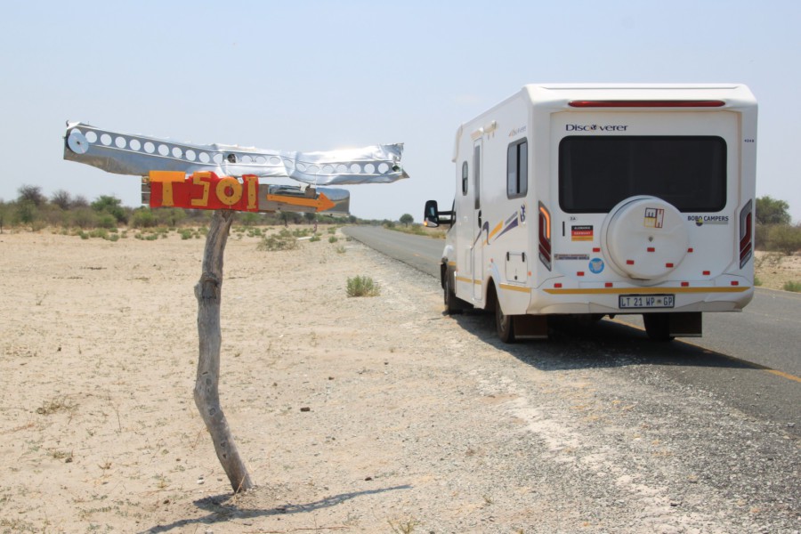Heute übernachten wir auf einem Campground in der Nähe von Orapa. 1967 wurden in dem Gebiet diamanthaltige Kimberlit-Dykes entdeckt; 1971 wurde die Orapa Diamond Mine eingerichtet, 1982 war sie vollständig in Betrieb. In der Folge entstand die Stadt. Orapa bedeutet in Sesarwa „Ruheplatz der Löwen“. Aus Sicherheitsgründen ist die Stadt für Touristen weitestgehend gesperrt. In der von dem kanadischen Unternehmen Lucara Diamond Corp. betriebenen Karowe-Mine wurde im November 2015 der mit 1.111 Karat zweitgrößte Diamant der Welt entdeckt. Von dem Glanz bekommen wir auf dem Campingplatz allerdings nichts mit. Allerdings haben wir dort einen Pool in dem es sich bestens abkühlen lässt.
