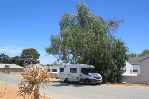 In Vanrhynsdorp legen wir eine kleine Mittagspause ein und suchen vor der sengenden Hitze Schutz unter einem Baum. Bei