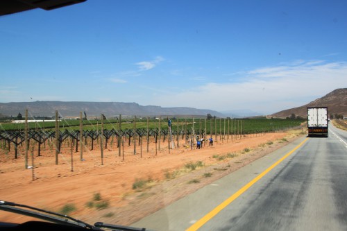 Es geht vorbei an grünen Oasen. Hier werden Tafelweintrauben und Orangen angebaut.