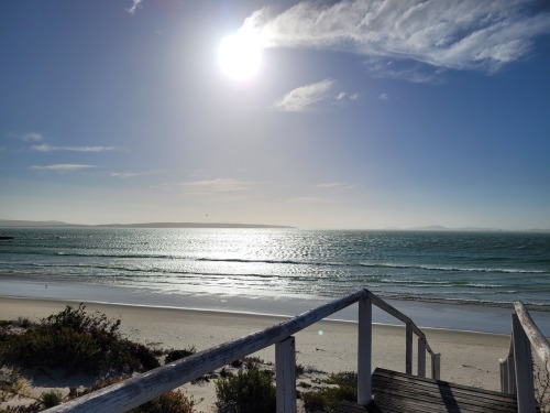 Von Melkbosstrand aus haben wir einen schönen Blick über die Bucht bis zum Tafelberg, der heute mit einer Tischdecke