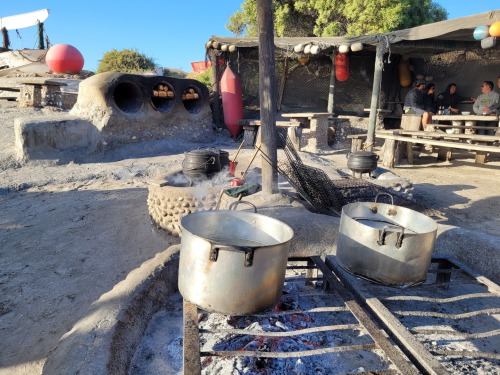 Es wird auf offenem Feuer gekocht und das frische Brot kommt aus dem Steinbackofen.