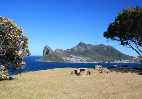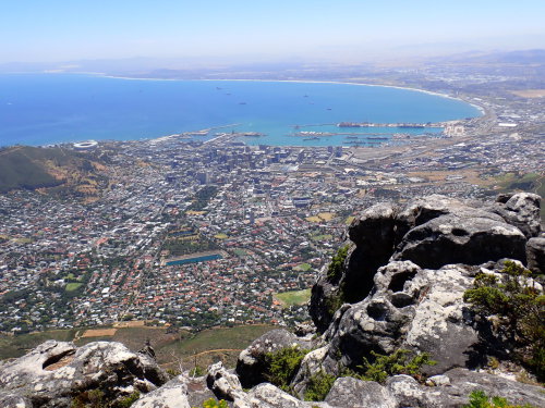 Von hier oben haben wir eine fantastische Aussicht auf Kapstadt und die vorgelagerte Insel, auf der Mandela inhaftiert