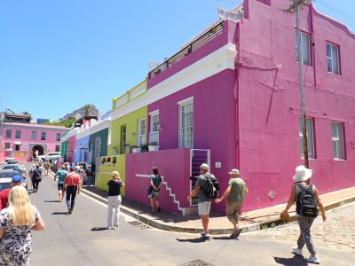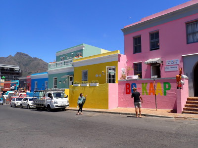 Natürlich besuchen wir auch den Stadtteil Bo-Kaap, der sofort an den vielen bunten Häusern, dem Markenzeichen des auch