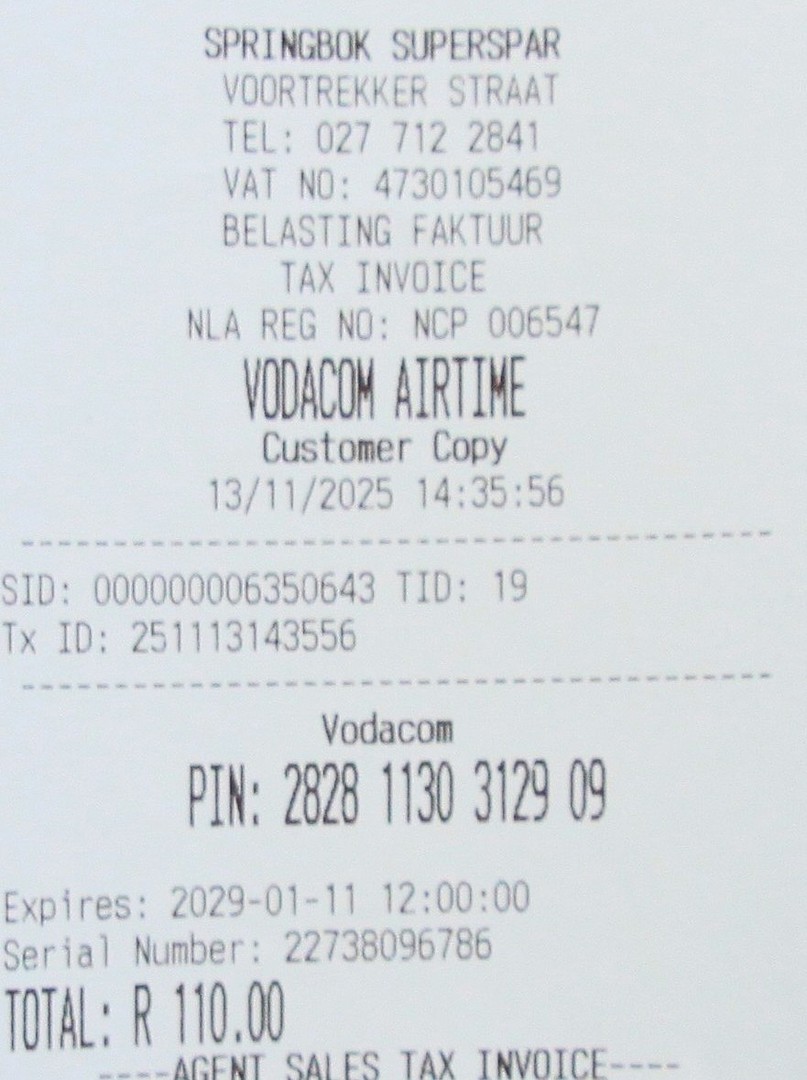 werden kann. Für 110 Rand, das sind etwa 5,50 Euro, bekommen wir 3,5 GB Datenvolumen.