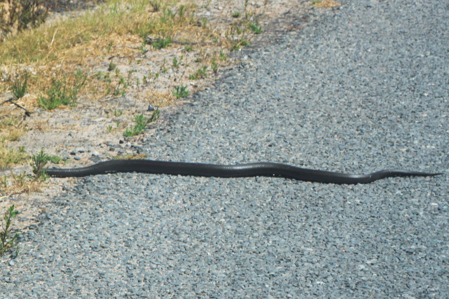 Vorsicht ist bei Schlangen geboten. Giftige Schwarze Mamba und Puffottern sind hier nicht selten. Diese überfahrenen Tiere