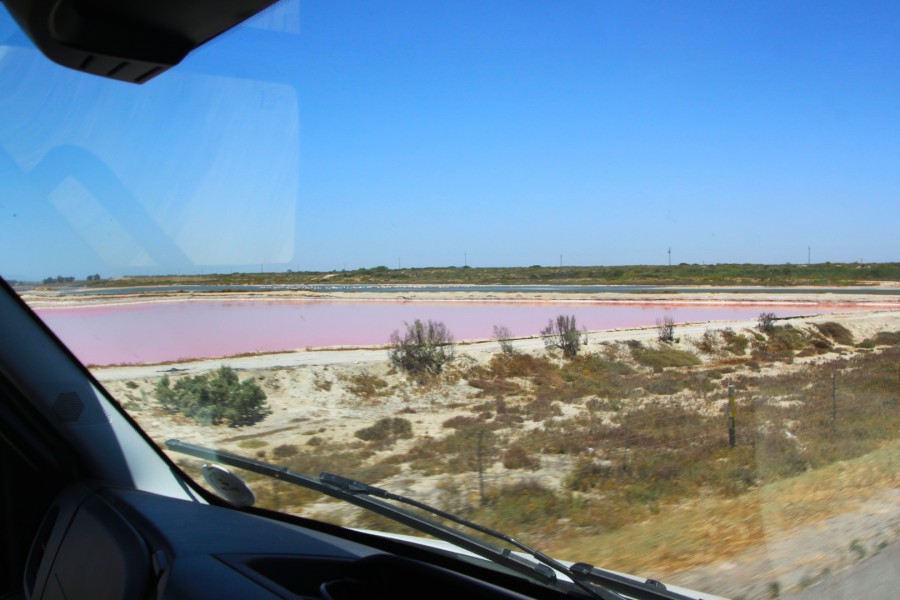 Unsere Fahrt geht an Salzfeldern vorbei …