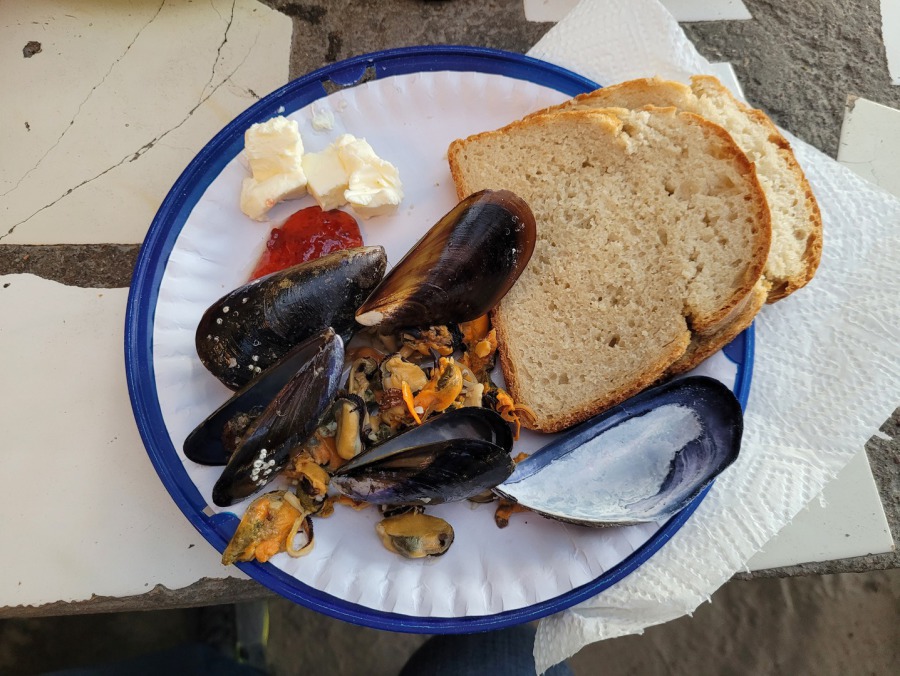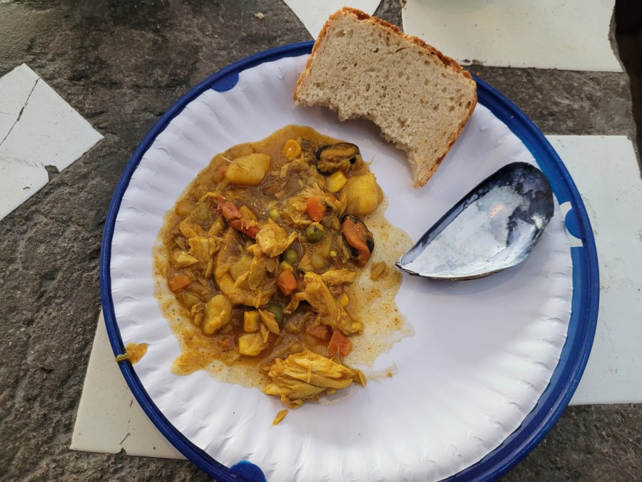 Passend zum Lokal wird das Essen auf Papptellern gereicht und als Besteck dient eine Muschel - echt urig. Uns erwarten