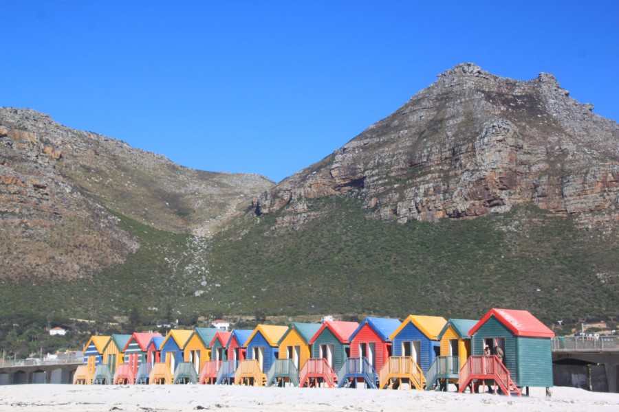 Dennoch finden wir für die ganz Abgehärteten in Muitzenberg hübsche bunte Umkleidehäuschen am Strand.